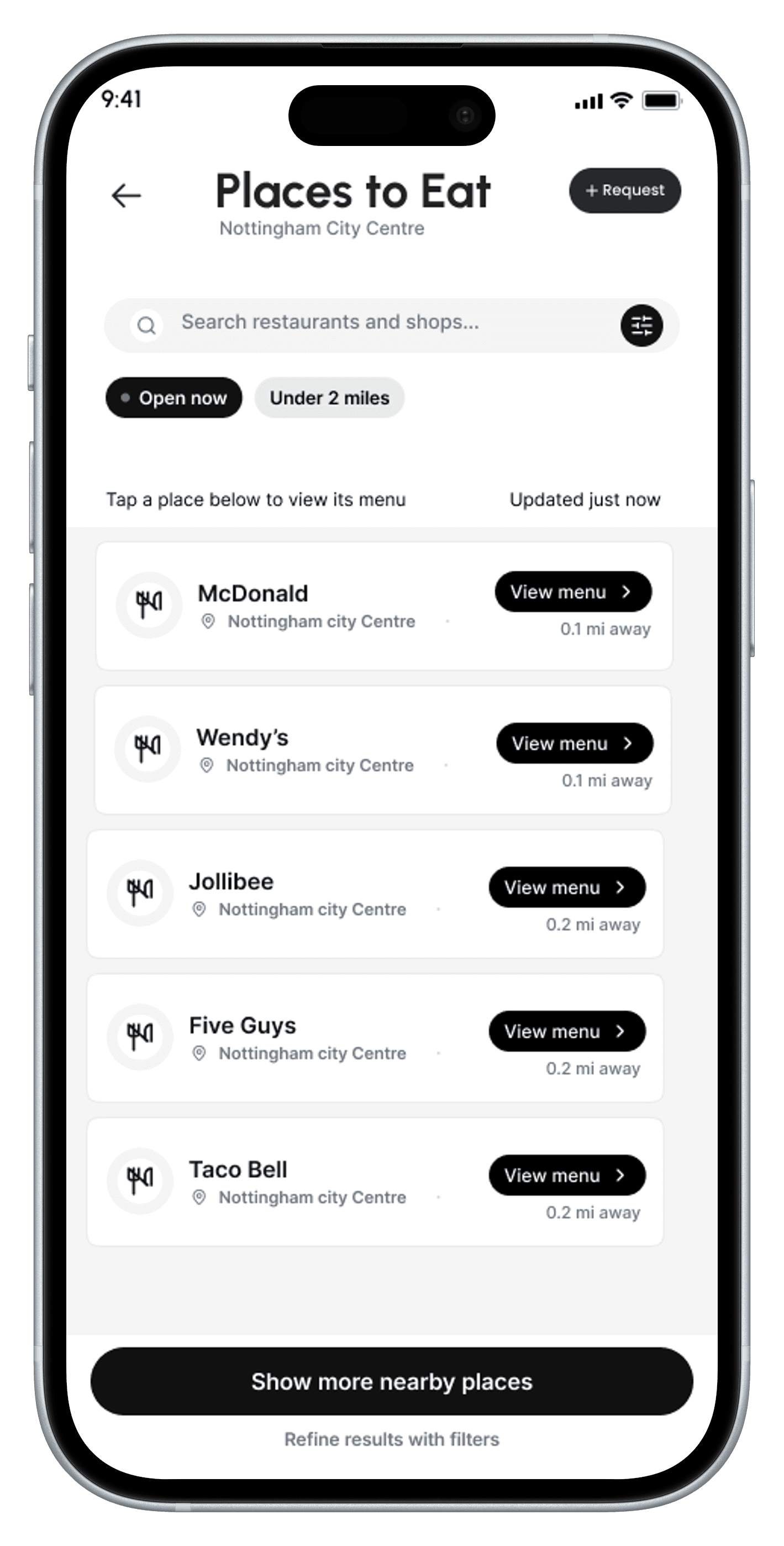 Walk into Costa, Tesco or Pret and see which items meet your macros on the spot. Our location‑aware nutrition app does the searching for you.